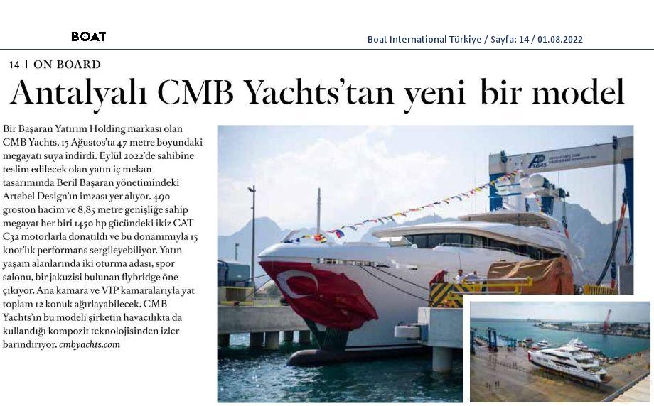 CMB Yachts has been operating in the yachting industry since 2006 with a 10,165 m2 facility in Antalya Free Zone and is a boutique shipyard with the capacity to build 3 47.40 meter motor yachts at the same time, offering RINA classed and Cayman Island flagged pleasure and commercial construction services.